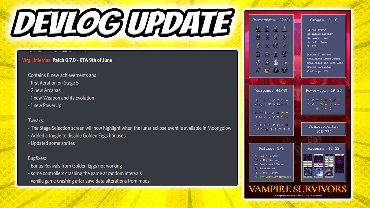 Vampire Survivors Lotm Dlc On Twitter Patch 0 8 0 The Winged One Contains 3 New Achievements Amp New Version Of Stage 5 Let S Mosey Will Revert To Simpler Version Once